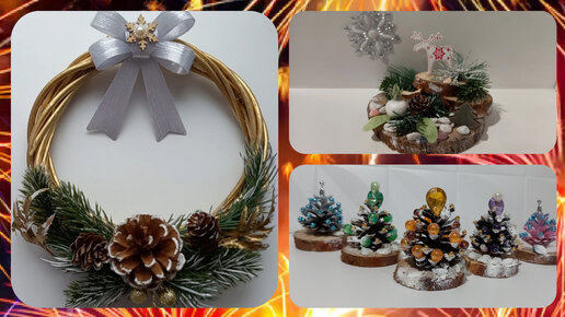 Новогодние поделки.Рожденственский венок.Новогодняя елка из шишек