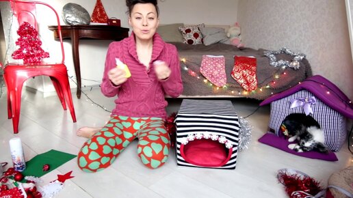 НОВОГОДНИЙ DIY ☆ ДОМИК ДЛЯ КОШКИ И СОБАКИ СВОИМИ РУКАМИ ИЗ КОРОБКИ