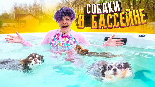 СОБАКИ ПЛАВАЮТ ПЕРВЫЙ РАЗ ПРОТИВ ТЕЧЕНИЯ В БАССЕЙНЕ! АКВАПАРК ДЛЯ КУПАНИЯ СОБАК!