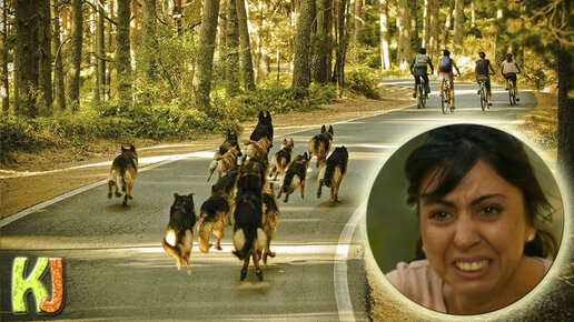 Свора собак бежит за девушкой на велосипеде, которой на самом деле уже нет