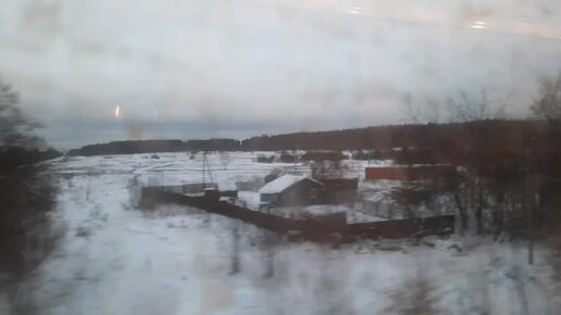 Вид пейзажа из окна электрички зимой платформа станции Совхоз подмосковный район вечером