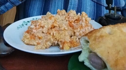 Кушаю рис и печёночный паштет с пирожком