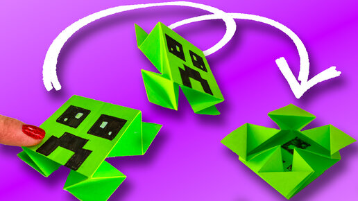 Оригами Майнкрафт Стив, Крипер и Оцелот | Забавная прыгающая игрушка из бумаги