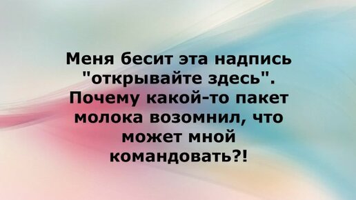 Меня бесит эта надпись "Открывайте здесь". Почему какой-то пакет молока возомнил, что может мной командовать?!...