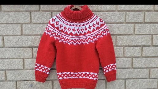 Детский свитер с круглой жаккардовой кокеткой (3 часть). Подробное видео вязания свитера. Вязание спицами.