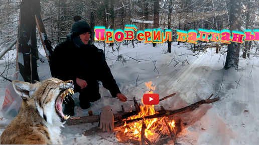 Один в тайге. Проверил капканы. Огонь и чай