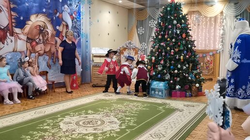 Мушкетеры жгут на новогодние утреннике в детском саду.