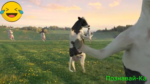 Коровы танцуют на лугу