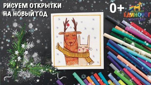 Открытка на новый год . Рисуем просто. Уроки рисования для детей