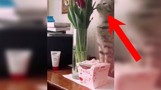 Кошечка не поняла какой из подарков надо кушать, поэтому досталось цветам / Угарные приколы с животными, Смеялся до слёз