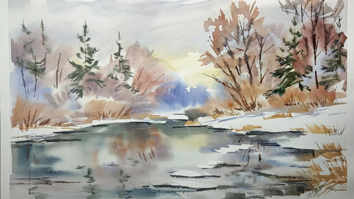Зимний пейзаж акварелью по-сырому. Мастер-класс для начинающих