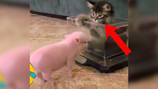 Котя испугался поросенка, но потом понял что с ним можно делать, играть конечно же | Подборка приколы с животными, Милые кошечки