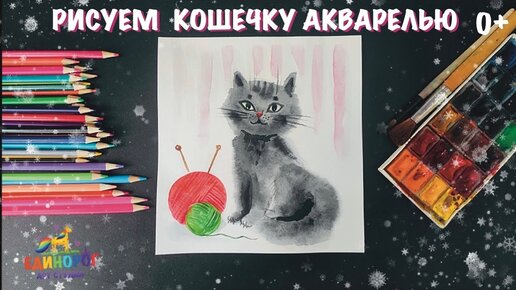 Как нарисовать кошку акварелью легко. Просто рисовать. Уроки рисования для детей.