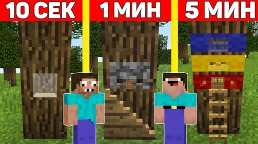 НУБ И ПРО СТРОЯТ МАЛЕНЬКИЙ ДОМ В ДЕРЕВЕ ЗА 10 СЕКУНД/ 1 МИНУТ/ 5 МИНУТ МАЙНКРАФТ ! БИТВА СТРОИТЕЛЕЙ