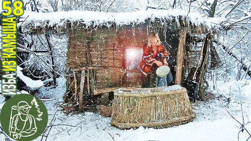 🔥 Горячая ванна в снегу 🪓 Бушкрафт в Избе из камыша - Серия 58