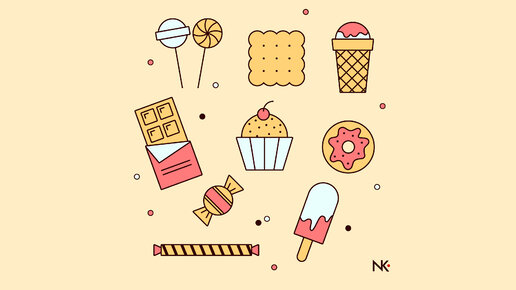 Как в Adobe Illustrator нарисовать иконки-сладости. Сет иконок