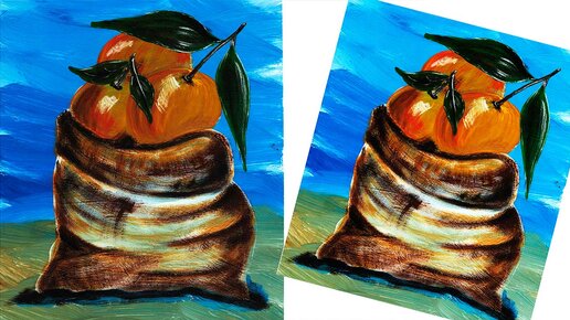 Как нарисовать мешок мандаринов. Рисуем Новогодний натюрморт. Рисуем фрукты.