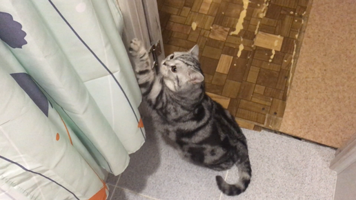 Шанежке очень нравится гулять в ванной комнате после ремонта
