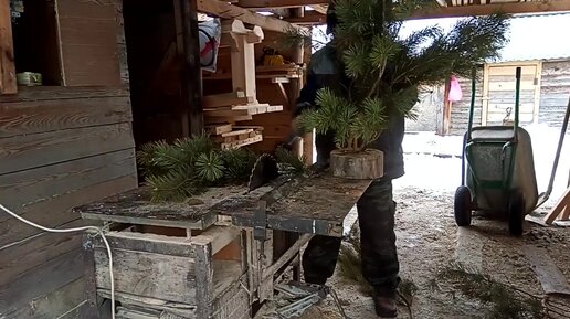 Новогодняя елка из пенька и сосновых веток, очень быстро , дешево , а так же своими руками .