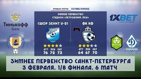 СШОР ЗЕНИТ U-21 - ФК КФ. Зимнее первенство Санкт-Петербурга. 6 матч