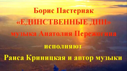 "ЕДИНСТВЕННЫЕ ДНИ" (сл. Бориса Пастернака, муз. Анатолия Пережогина) исполняют Раиса Криницкая и композитор
