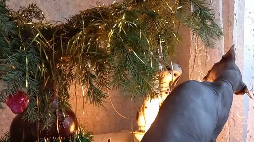 Ёлочный дождик- испытание для котиков Кто же устоит?