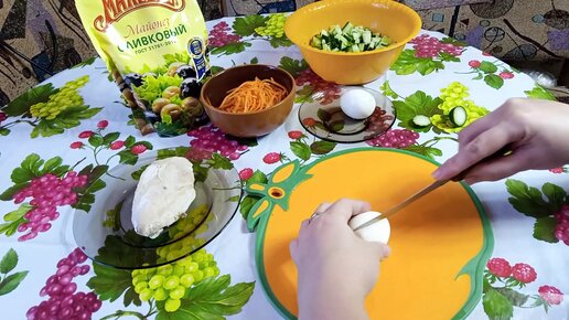 Салат с курицей и корейской морковью. Простой и очень вкусный салат🥗😋👍.