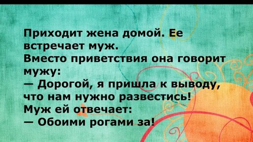 Приходит жена домой. Ее встречает муж. Вместо приветствия она говорит мужу: - Дорогой, я пришла к выводу, что нам нужно...