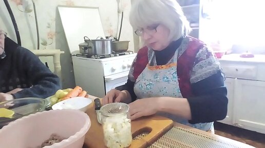 Готовимся к Новому году. Маринуем утку, готовим салаты. Я чищу картошку.