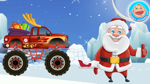 Дед Мороз на машинке Монстр Трак везет подарки малышам!
