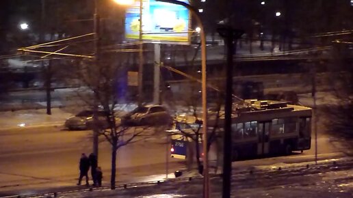 Сильное искрение между проводами и троллейбусными "башмаками"