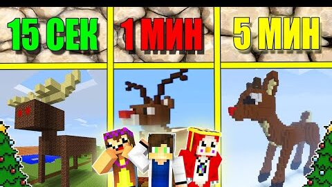 ПОСТРОЙКИ ЗА 15 СЕК 1 МИН 5 МИН В МАЙНКРАФТЕ НУБ И ПРО СТРОЯТ ОЛЕНЯ И ЁЛКУ НОВОГОДНЮЮ В MINECRAFT