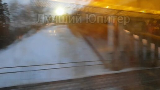 Вид пейзажа из окна электрички зимой платформа станции "Отдых" вечером московская область