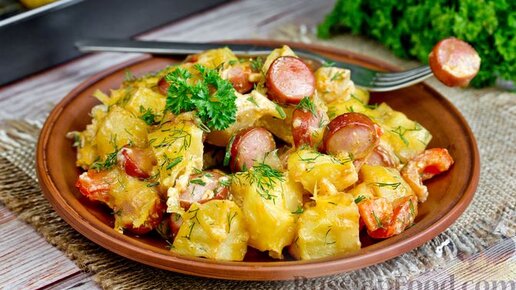 Всё смешали - и в духовку. Картошка с сосисками и помидорами