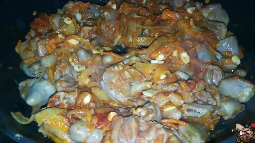 Куриные сердечки в томатно-сливочном соусе.