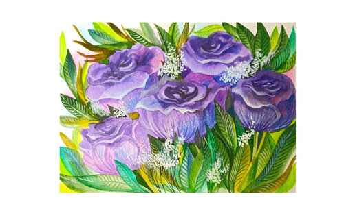 Акварельная зарисовка фиолетовых цветов 💜💚💜