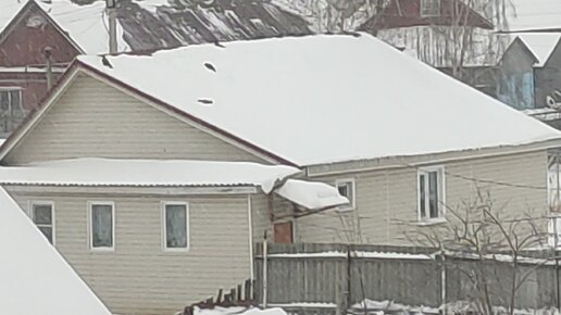 Первое января, вороны купаются в снегу на крыше