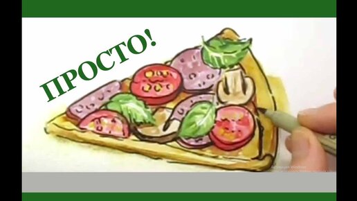 Как просто нарисовать пиццу акварелью. Пошаговое рисование