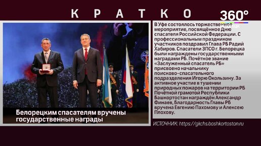 Белорецким спасателям вручены государственные награды