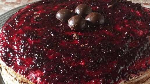 Шоколадный блинный торт с кремом из мягкого творога и фиников
