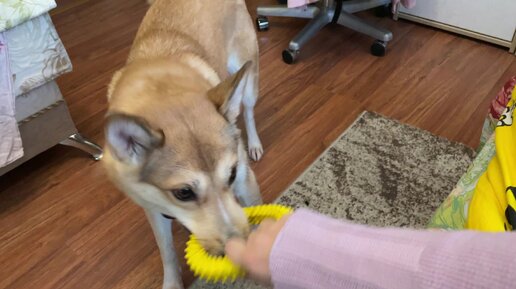 Перетягивание резинового кольца. Любимое занятие Альфы