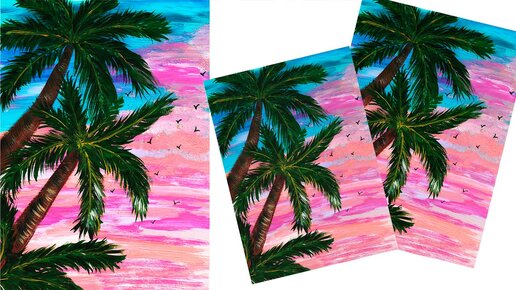 Нарисуем пальмы. Как нарисовать небо с облаками. Рисуем летний пейзаж.