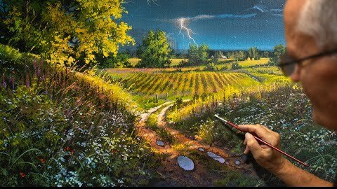 We draw the Road, Field. (Acrylic Painting) Step by step | lesson | Time Lapse | Episode 4.
