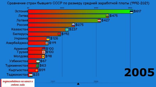 Динамика размера средней зарплаты в странах бывшего СССР (1992-2021 г.г.)