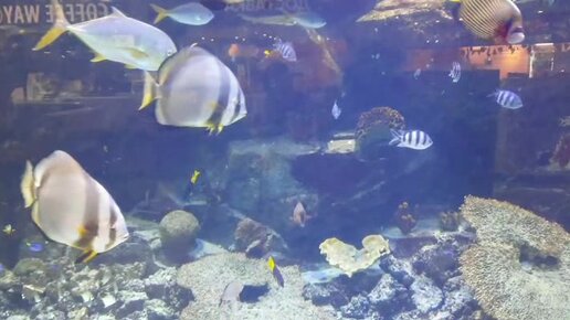 Рыбы в огромном аквариуме нашего супермаркета в Курске. Мелким рыбешкам здесь раздолье. А больших жалко. Им явно тесно