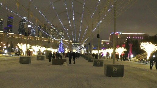 Прогулка по Москве в новогодние каникулы в парке Победы. Световой тоннель освещается под классическую музыку