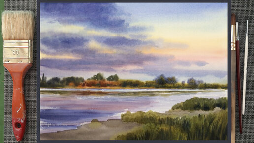 Уроки рисования. Как рисовать пейзаж акварелью. Пошаговое рисование для начинающих. Акварель.