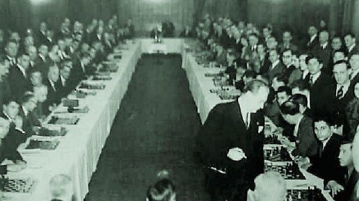 Чемпион Алехин дает сеанс на 42 досках в Торонто, 1932. На одной их досок случился вот такой шедевр с превращениями - доигрываю