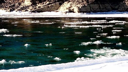 Алтай. Январская Катунь со скал, которые летом являются островом
