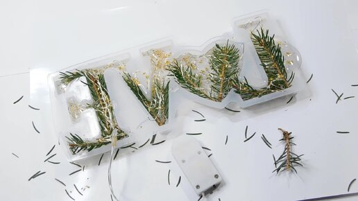 Необычное новогоднее украшение LOVE из еловых веток и эпоксидки